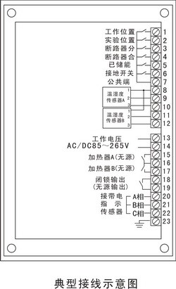 → 带电指示器的各输入端分别接上对应的高压带电传感器,高电压试验时,带电指示灯亮,有闭锁功能时闭锁灯亮;高压断开后,带电指示灯灭,绿灯亮,闭锁解除(无工作电源时,闭锁有效。)